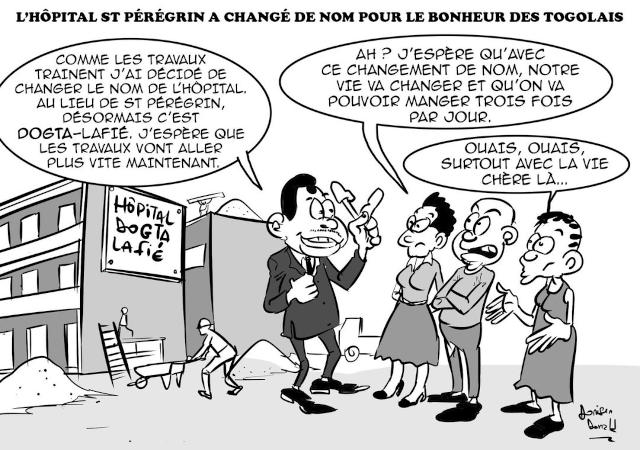 Le Togolais est trop mauvais. « Dépérégrination », c’est la jolie expression qu’ils ont collé au changement de nom de l’hôpital Saint Pérégrin qui devient « Dogta Lafiè », c’est-à-dire hôpital de santé en langue locale. Comme s’il existait aussi un « hôpital de maladie » aussi.
