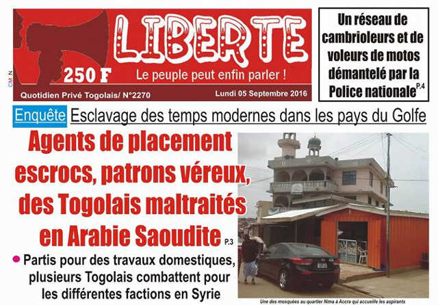 De tout ce qui précède, le gouvernement togolais est-il au courant de l’existence de ces réseaux qui envoient des gens en Arabie Saoudite ? Nous répondons par l’affirmative en nous basant sur le communiqué du 9 juillet 2015 conjointement signé par les ministres des Affaires étrangères et de la Sécurité et de la Protection. « Il existerait des réseaux de trafic d’êtres humains, pudiquement appelés « agences de placement », à la tête desquels se trouveraient des Libanais et des Togolais. La même situation prévaut dans d’autres pays comme l’Arabie Saoudite, le Qatar, le Koweït, etc. », indique le communiqué. A-t-on ouvert une enquête pour démasquer ces trafiquants ? Non. A la cellule des Togolais de l’extérieur au ministère des Affaires étrangère où nous nous sommes rendus, on nous a fait savoir que le communiqué du 9 juillet 2015 qui était consacré à la situation des Togolais au Liban reste d’actualité. « Les dispositions qui ont été prises sont toujours d’actualité et concernent tous les pays du Golfe. Souvent, ce sont des négociations entre employeurs et employés. Nous ne sommes saisis que plus tard quand il y a des problèmes », explique une source. Mais par rapport aux Togolais qui sont envoyés en Syrie via l’Arabie Saoudite, ils affirment n’être au courant de rien et que c’est nous qui leur donnons cette information. La boucle est donc bouclée. Pendant ce temps, personne n’est au Consulat général du Togo en Arabie Saoudite pour décrocher nos nombreux appels téléphoniques. De même, nous n’avons reçu aucune réponse aux questions que nous avons envoyées par mail. Ainsi va le Togo émergent pour 2030 ! Mais le danger est là avec ces hommes qu’on transforme en « robots » en Syrie et qui, si Dieu leur prête vie, rentreront un jour au bercail.