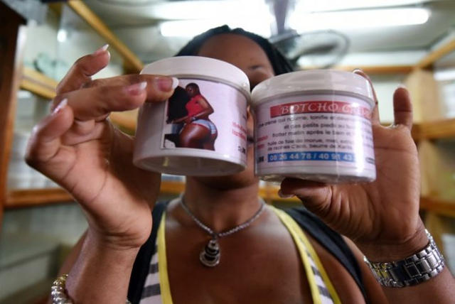 Des produits « élargissants » comme la crème « Botcho » pour se grossir les fesses en vente sur le marché de Treichville, en banlieue d’Abidjan, Côte d’Ivoire, le 23 juillet 2015 | Crédit Photo : Sia Kambou / AFP