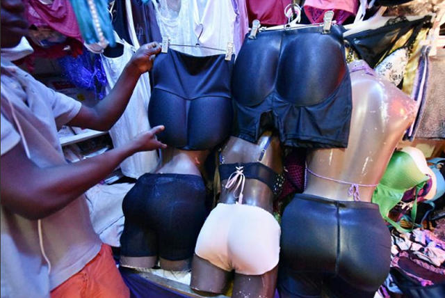 La beauté étant une notion relative qui dépend des cultures et du temps, en Afrique, les femmes avec des « actifs » massifs devant et derrière font fureur. Du coup, certaines femmes utilisent toute sorte de subterfuges pour mettre en valeur leur poitrine et surtout leur postérieur. De la chirurgie plastique aux culottes rembourrées en passant par du cube alimentaire « Maggi » en suppositoire jusqu’ aux crèmes «grossifesses » comme le « Botcho Bobaraba » qui peuvent carrément en danger leur santé, certaines femmes africaines ne lésinent sur rien pour attirer le regard sur leur popotin. Ci-dessus une derrière « Ikebe Super D. » dans une rue d’un pays africain | Crédit photo : Mobypicture