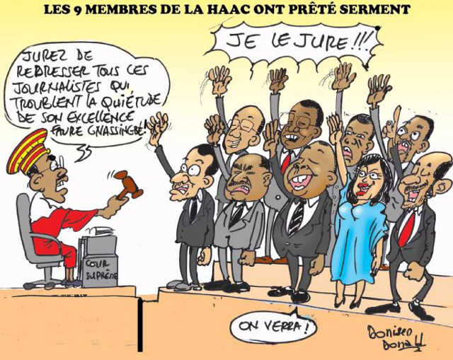 L’entrée à la salle d’audience qui était pleine à craquer a été soumise à la fouille policière. Il était 9 heures lorsque le président de la haute instance, Patrice Akakpovi Gamatho a ouvert l’audience. Le Procureur général passa donc à la présentation des récipiendaires et de leurs profils. Après quoi, les articles 3 et 4 de la loi organique de l’institution relatifs à l’indépendance et à l’impartialité furent rappelés à la nouvelle équipe. Les neuf membres ont été ensuite appelés par le président de la Cour suprême à passer devant le prétoire non pas « pour être jugés », mais pour « prêter serment ». A tour de rôle, chaque membre élu, réélu ou nommé, levant la main droite, a juré « solennellement de bien et fidèlement remplir » ses « fonctions de membre de la HAAC en toute indépendance et impartialité de façon digne et loyale ».
