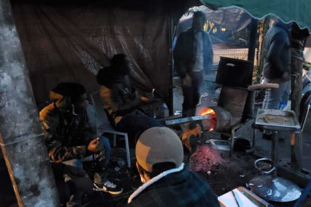 Dans ce coin de Lille, le bois n’a rien de sacré comme en Côte d’Ivoire, mais il permet au poêle dragon de cracher un peu de chaleur. Une bénédiction quand la température frôle les 1 °C. C’est autour de ce fourneau artisanal, fait à partir de deux bonbonnes de gaz, que Kanté, Emmanuel, Ali, Gnégné et Jimmy se retrouvent matin, midi et soir pour préparer leur café, leur repas et se réchauffer.