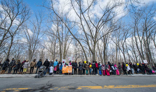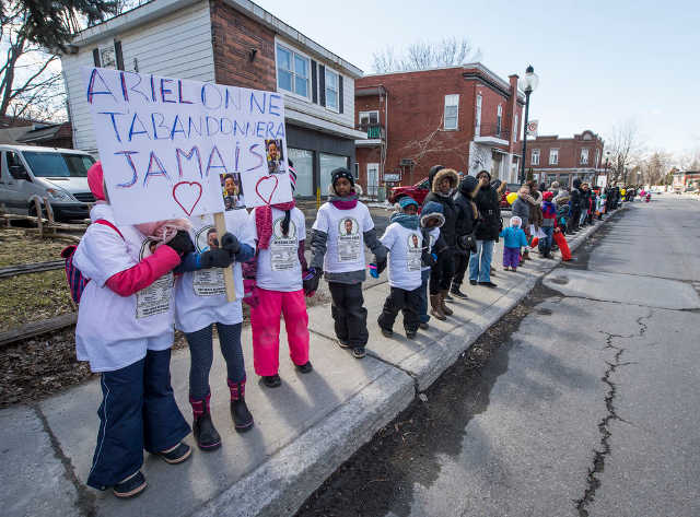 Une centaine de personnes se sont rassemblées samedi au parc des Bateliers, dans l’arrondissement d’Ahunstic-Cartierville, à Montréal, pour faire une chaîne humaine en soutien aux parents du petit Ariel Jeffrey Kouakou, disparu depuis le 12 mars dernier.