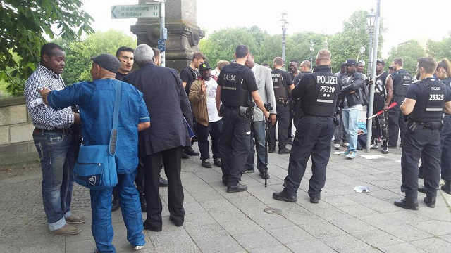 « Je suivais la police allemande afin de savoir dans quel commissariat nos trois camarades seraient détenus. Ils étaient retenus dans les locaux de la police criminelle (c’est en mon sens les criminels hôtes du gouvernement allemand qui devaient y être. Malheureusement les rôles ont été intervertis.) J’y étais et j’ai insisté qu’ils soient libérés avant que je ne quitte leurs locaux. Après une véritable tracasserie avec les agents en poste ce jour-là, nos amis ont été relâchés après environ quatre heures de temps de détention. Après que je me sois rassuré qu’ils aient été bien traités au cours de leur détention, je les ai pris dans mon véhicule et les ai ramenés sur notre point de ralliement (…) Tout le monde comprend pourquoi la police allemande ayant été informée de la marche bruyante, a préféré utiliser la manière forte pour nous caser dans un coin de rue afin d’éviter que nous soyons plus proches du cortège du président du RPT/ UNIR » écrit Akondoh Ali sur page Facebook.