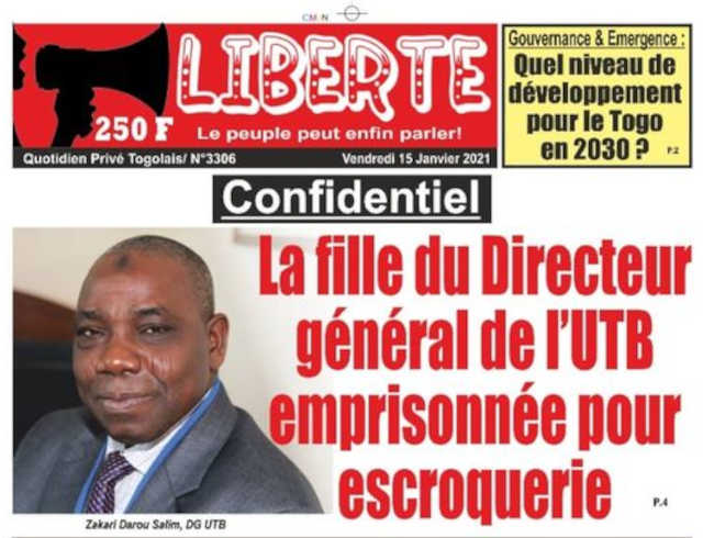 La prison civile de Lomé accueille depuis mercredi 13 janvier 2021 une nouvelle pensionnaire VIP. De sources en provenance de l’intérieur de la prison civile de Lomé, on apprend que Darou-Salim Faouziatou, fille de Zakari Dorou-Salim, l’actuel Directeur général de l’Union Togolaise de Banque a été déposée pour escroquerie avérée.