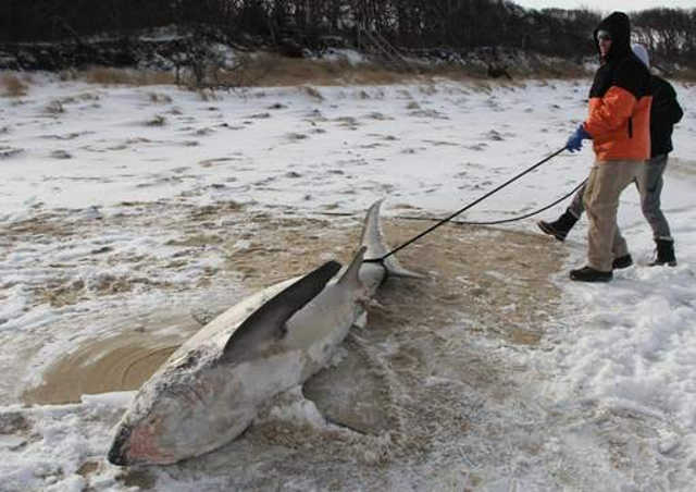 Une vague de froid paralyse le Canada et le nord des États-Unis. Plusieurs requins sont morts de chocs thermiques causés par les températures glaciales.