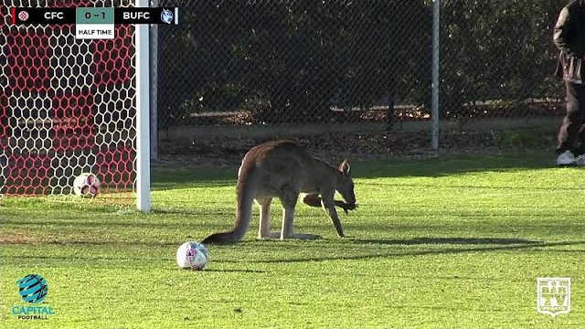 Fatigué des pitreries de l’animal, l’entraîneur d’une des deux équipes a pris sa voiture pour tenter de le faire partir du terrain. Ce qui fut fait…mais que pour quelques instants car le kangourou a décidé de s’offrir un tour d’honneur, avant de partir pour de bon !