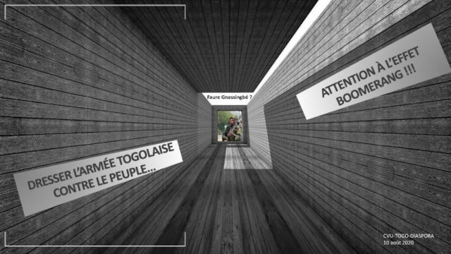 Le paradoxe est que c’est l’armée clanique et non-républicaine qui menace l’existence de la République du Togo en empêchant l’ordre constitutionnel démocratique fondé sur la vérité des urnes d’émerger. Aussi, Faure Gnassingbé et son père avant lui, avec le conseil militaire d’agents militaires français et israéliens et même Rwandais, ont systématiquement exigé et obtenu que les forces armées togolaise viennent assister, quand il ne s’agit pas de remplacer les forces de police, de gendarmerie et de sécurité dans la protection d’objectifs civils et dans la lutte contre le Peuple togolais, soif d’alternance.