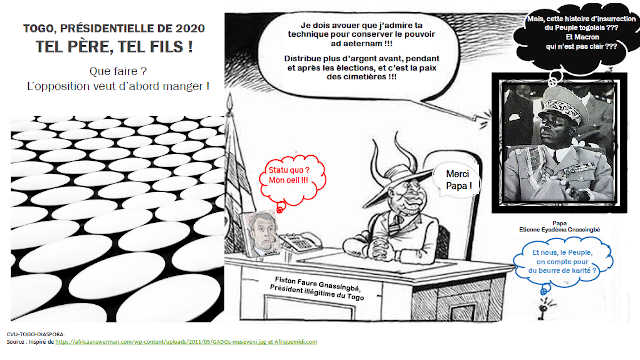 Le Peuple togolais doit refuser d’être conduit à des élections de la contre-vérité des urnes comme des moutons. La raison est simple. A côté de Faure Gnassingbé qui endette le Togo, privatise sa dette sur le dos des populations togolaises, il existe une fausse opposition alimentaire qui trompe le Peuple togolais. Il importe donc de la dénoncer en expliquant comment les acteurs au pouvoir, acquis par la force et le sang organisent en amont, pendant et en aval la continuité du système RPT/UNIR.