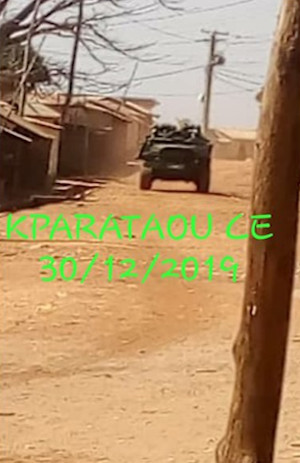 Voici l’image de Kparatao, au centre du Togo, en cette fin d’année. Un village de plus de dix mille âmes. Vous le croyez désert, en réalité ce sont les rues qui ont été désertées, les habitants sont là, cloîtrés dans leurs maisons quand ils n’ont pas eu la chance d’en fuir à temps. L’harmattan a dénudé les branches des baobabs mais les poteaux et les fils électriques sont là pour témoigner d’un lieu habité.