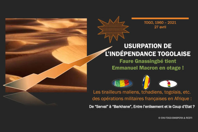 Le Collectif pour la Vérité des Urnes Togo-Diaspora (CVU-TOGO-DIASPORA) et le Réseau de la Coordination de la Diaspora Togolaise Indépendante (RCDTI) invitent chaque citoyenne et chaque citoyen togolais, désireux de rétablir les bases et l’environnement propice à l’indépendance au sens togolais « Ablodè », de prendre conscience de la réalité de l’indépendance et du détachement de Faure Gnassingbé et consorts à son égard.