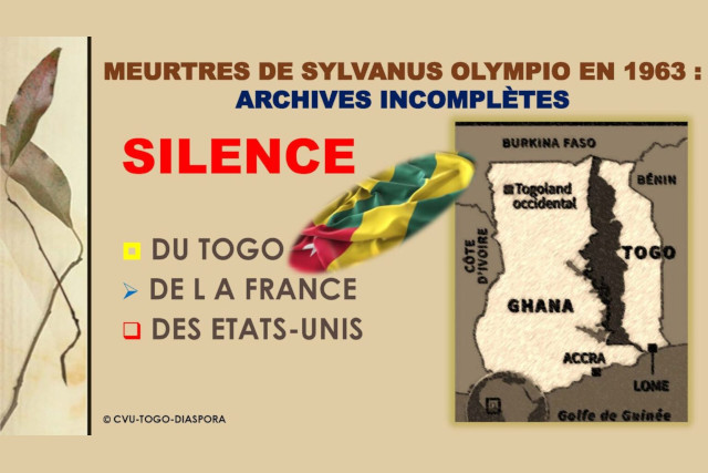 Le 13 janvier 1963[9], des dirigeants colonialistes et leurs acteurs de terrain ont assassiné Sylvanus Olympio, le premier président élu du Togo devenu indépendant depuis le 27 avril 1960. Il s’agit du premier Coup d’Etat militaire à l’assassinat d’un Président démocratiquement élu en Afrique. Les raisons sont multiples. Mais la volonté de Sylvanus Olympio de procéder à la création d’une monnaie nationale togolaise dans la zone France, chasse gardée française, était considérée comme plus qu’un affront et une mise en cause de la souveraineté de la France sur les pays acceptant les principes monétaires de la zone franc. Les responsabilités restent partagées entre le Togo, la France et les Etats-Unis. Aussi, ce sont les archives de ces trois pays qui doivent être déclassifiées et pas seulement les archives françaises.