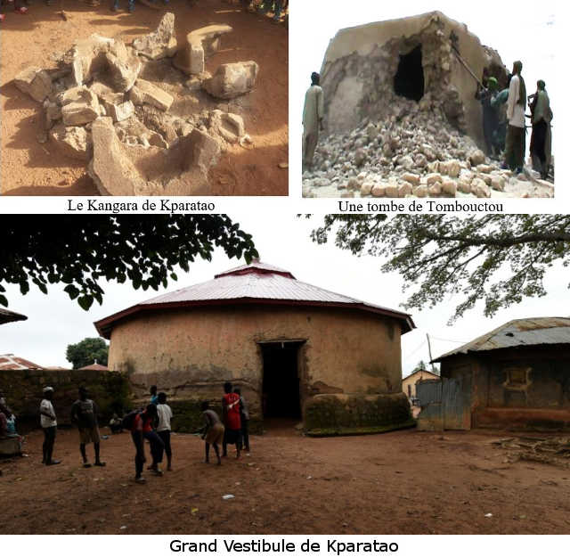 C’est dans le même village que les lycaons enragés de Faure ont abattu l’année dernière une vache qu’ils accusaient de les menacer alors que la bête était solidement attachée, attendant le sort qu’allait lui réserver le boucher du village. Ce sont les mêmes lycaons qui reviennent ce 11 avril 2018, cette fois pour détruire un monument historique. Faure et ses colonels avaient prétendu que les les jeunes de Kparatao étaient djihadistes. On sait maintenant qui sont les vrais djihadistes, eux qui par leurs pratiques occultes d’un autre âge, voient dans une vache qu’on mène à l’abattoir et dans un simple monument historique des génies qui les hantent. Ceux de Tombouctou sont à la CPI ; ceux de Kparatao et leur chef ne tarderont pas à les y rejoindre.