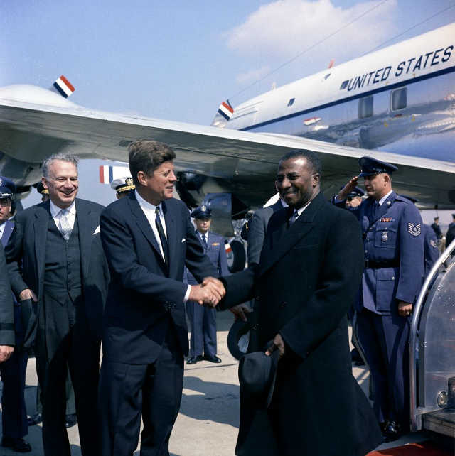 Le 12 Mars 1962, le Président Sylvanus Olympio atterrit à Washington D.C. Au bas de l’échelle, il est accueilli par le Président John Fitzerald Kennedy. C’est le début d’une visite d’État de 10 jours au cours de laquelle il est reçu par l’élite du monde politique et économique Américain.