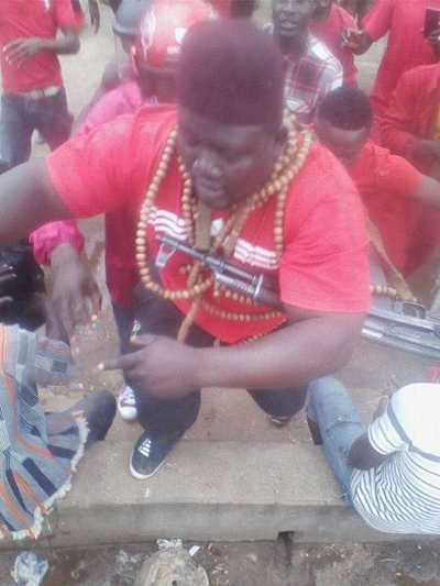 Ces rumeurs sont devenues des clameurs. En réalité les manifestants brandissant les armes sont aujourd’hui des inconnus du PNP. Il s’avère qu’ils sont des agents infiltrés de Yark, du moins l’un d’entre eux portant un képi rouge avec un gros chapelet au cou (voir photo ci-dessous ) a été clairement identifié comme tel car ayant déjà servi ailleurs pour le compte du régime.