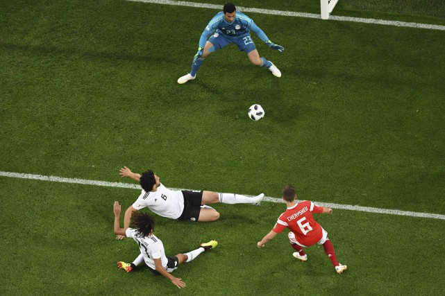 Saint-Pétersbourg, Russie | La Russie a un pied et demi en huitièmes de finale, après avoir corrigé l’Égypte (3-1), au bord de l’élimination en dépit de la titularisation de Mohamed Salah, mardi dans le deuxième match du groupe A du Mondial 2018, à Saint-Pétersbourg.