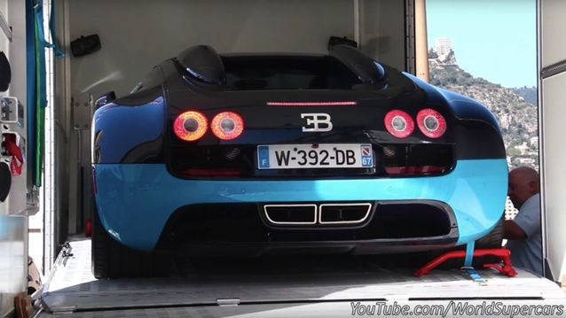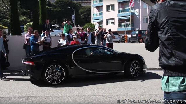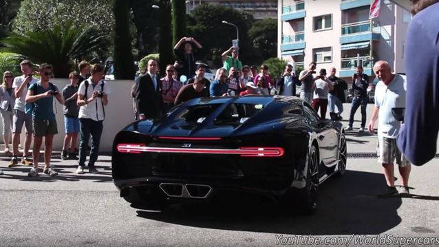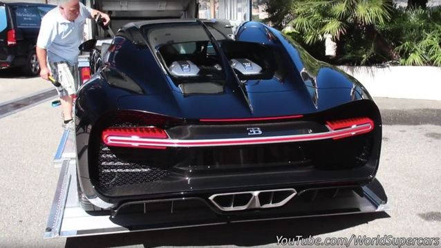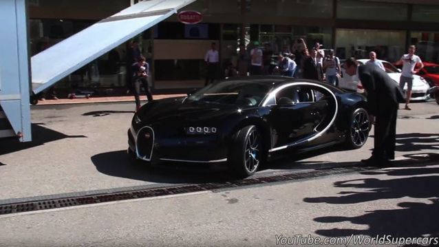 Bref, on peut non seulement voir, mais aussi entendre le son à bas régime de ce bolide Chiron qui débarque de son camion de livraison devant le concessionnaire Bugatti monégasque.