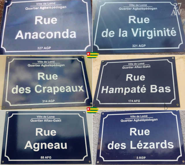 Mais cela ne semble préoccuper personne. L’urgence visiblement pour ceux qui ont squatté illégitimement pendant des décennies les municipalités, c’est l’adressage des rues de Lomé. Pendant des années d’imposture, ils ne se sont jamais préoccupés de ces rues qui étaient le cadet de leurs soucis. Ce qui est incompréhensible, c’est la célérité et la légèreté avec lesquelles ils se sont employés, à quelques semaines seulement de la fin de leur mandat, à cette opération d’adressage des rues de Lomé dans un embrouillamini indescriptible avec les énormes dégâts, attentats et massacres contre la langue de Molière. En donnant des noms saugrenus et farfelus à nos rues.