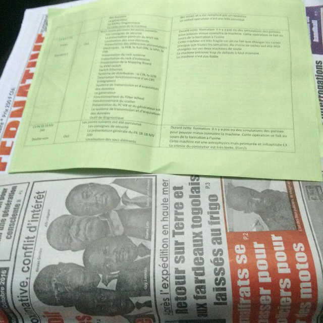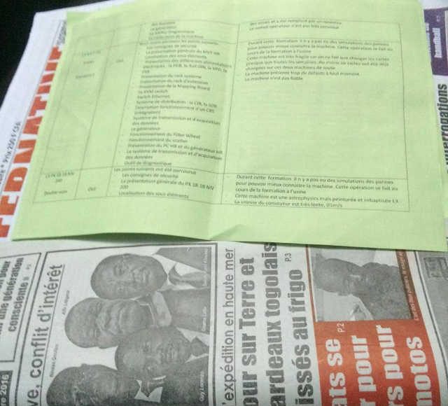 Dénommés « Rapport de formation sur les machines à rayon X de la nouvelle aérogare et du nouveau fret », ces documents renseignent l’opinion non seulement sur l’état défectueux du matériel acquis au prix des yeux de la tête, mais mettent aussi en lumière les risques d’insécurité auxquels cet aéroport est soumis en ce temps de menaces terroristes. La formation sur les nouvelles machines installées a commencé le 19 février 2015 et s’est achevée quelques jours plus tard. L’état des machines acquises à prix d’or sur le tableau qui suit est non seulement scandaleux mais aussi inquiétant. Scandaleux parce que la bande à Gnama Latta, et certainement Ninsao Gnofam, malgré les 115 milliards de francs CFA s’est arrangée pour acheter du matériel défectueux au marché noir dont certains ont été démontés, le repeindre en prenant soin de le renommer au nom d’une société qui ne l’a jamais vendu au Togo. Un faux et usage de faux qui pourrait coûter sa crédibilité à l’aéroport de Lomé. Inquiétant ensuite pour la simple raison, comme l’indiquent les observations, que ces machines ne sont pas en mesure de détecter certaines menaces avec précision, ou parfois pas du tout. En ces temps de menaces terroristes, on peut conclure que le pays n’est pas à l’abri de risque, de même que les compagnies qui desservent Lomé.