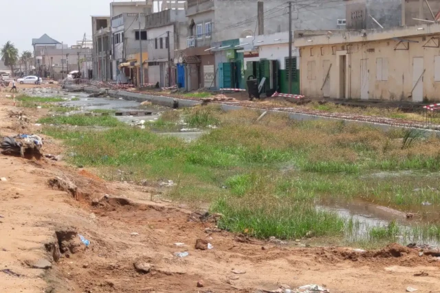 Les conséquences des retards accumulés sont désastreuses. Les caniveaux, censés évacuer les eaux pluviales, sont souvent à ciel ouvert, certains encore ornés de barres de fer rouillés et pointues (laissées à l’air libre), dégageant des relents pestilentiels et débordant à la moindre pluie. Les riverains se trouvent piégés face à des rigoles d’eau stagnantes, bloquant l’accès à leurs maisons tout en les exposant aux risques sanitaires et à des accidents mortels. Les flaques d’eau devenues permanentes se transforment en « lagunes », créant un terrain fertile pour les moustiques, des reptiles et multipliant les cas de maladies vectorielles.