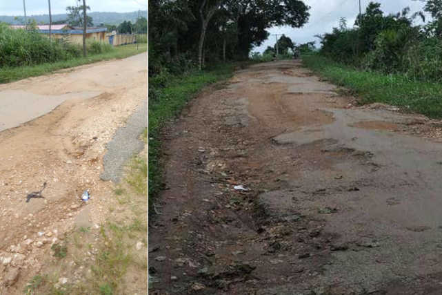 Présentement, la bitume est quasi inexistante et laisse place à une route en terre rouge cause de poussière comportant de nombreux ravins. Il faut relever le fort taux de la pluviométrie dans la zone qui constitut un facteur accélérateur de sa dégradation la rendant entièrement impraticable aujourd’hui.